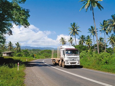 瓦努阿島是南太平洋島國(guó)斐濟(jì)第二大島。中鐵一局斐濟(jì)公司在島上修建的納布瓦魯高速公路和布扎貝高速公路解決了人們出行的“老大難”問(wèn)題,有力拉動(dòng)了經(jīng)濟(jì)發(fā)展,被斐濟(jì)民眾譽(yù)為“斐中兩國(guó)友好的紐帶”“共同發(fā)展致富的高速路”。圖為一輛卡車(chē)行駛在布扎貝高速公路上。 新華社記者 張永興攝