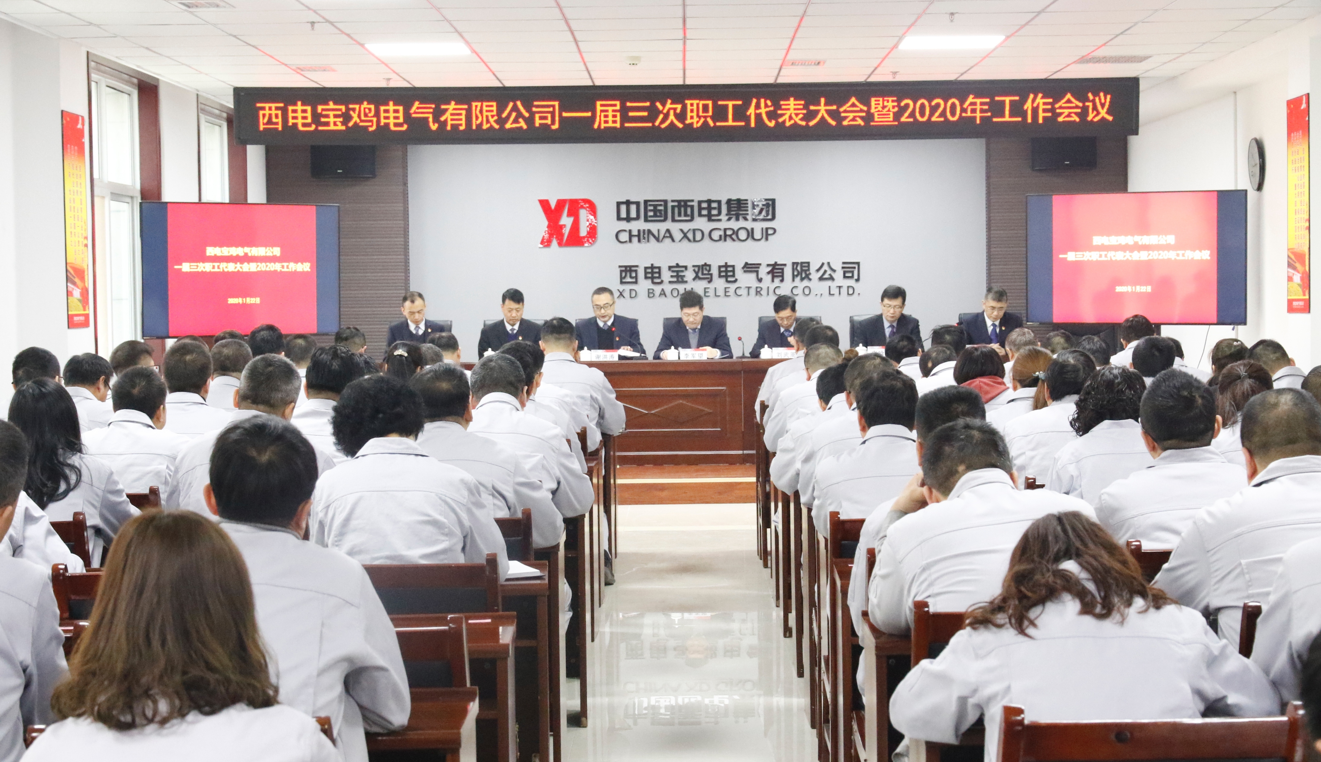 1月22日,西電寶雞電氣召開一屆三次職工代表大會(huì)暨2020年工作會(huì),公司領(lǐng)導(dǎo)、中層干部、職工代表及先進(jìn)個(gè)人等100余人參加會(huì)議,電氣產(chǎn)品產(chǎn)業(yè)子集團(tuán)(寶光集團(tuán))黨委書記、董事長(zhǎng)李軍望出席會(huì)議。會(huì)議由公司總經(jīng)理謝洪濤主持。1月22日,西電寶雞電氣召開一屆三次職工代表大會(huì)暨2020年工作會(huì),公司領(lǐng)導(dǎo)、中層干部、職工代表及先進(jìn)個(gè)人等100余人參加會(huì)議,電氣產(chǎn)品產(chǎn)業(yè)子集團(tuán)(寶光集團(tuán))黨委書記、董事長(zhǎng)李軍望出席會(huì)議。會(huì)議由公司總經(jīng)理謝洪濤主持。