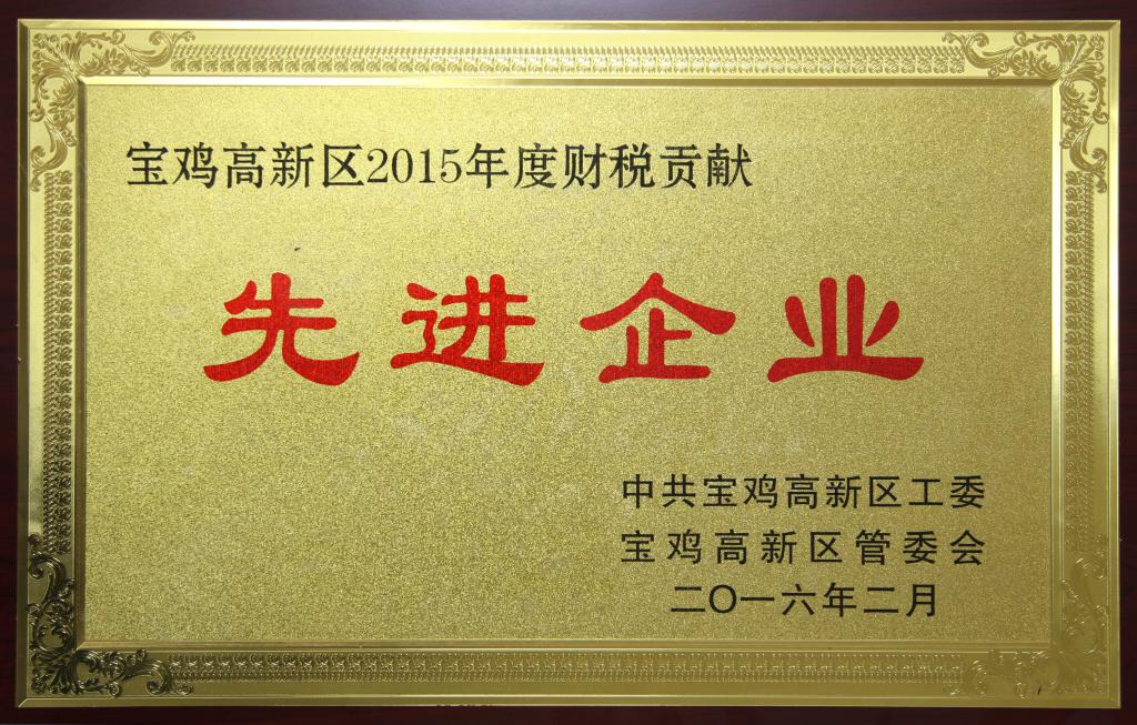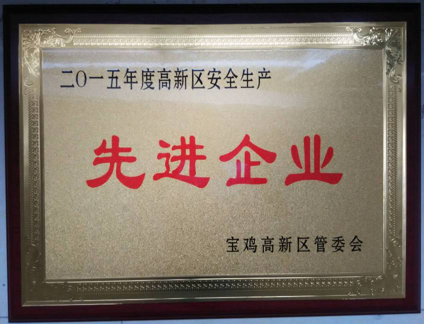 2015年度寶雞高新區(qū)安全生產(chǎn)先進企業(yè)