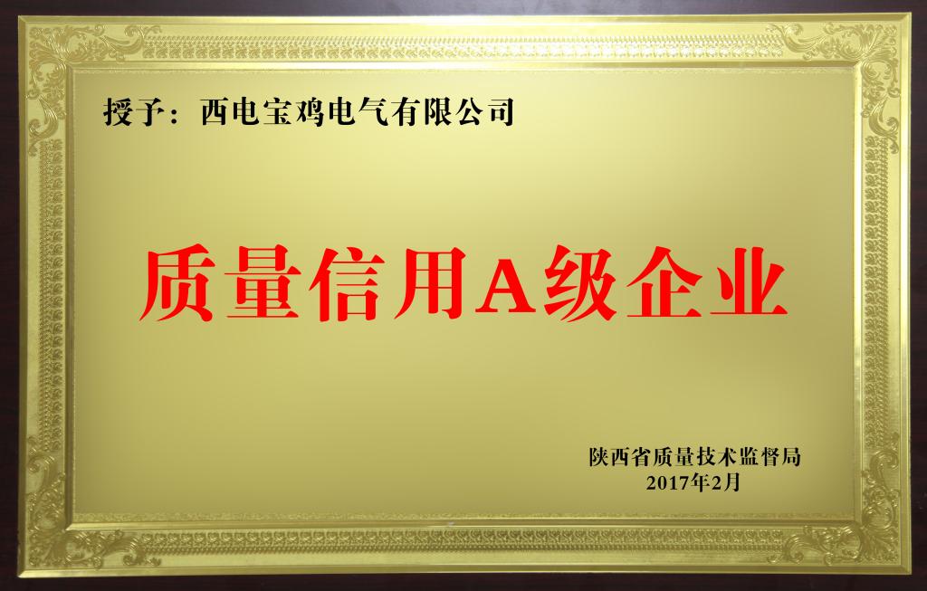 2017.2陜西省質(zhì)量信譽A級企業(yè)