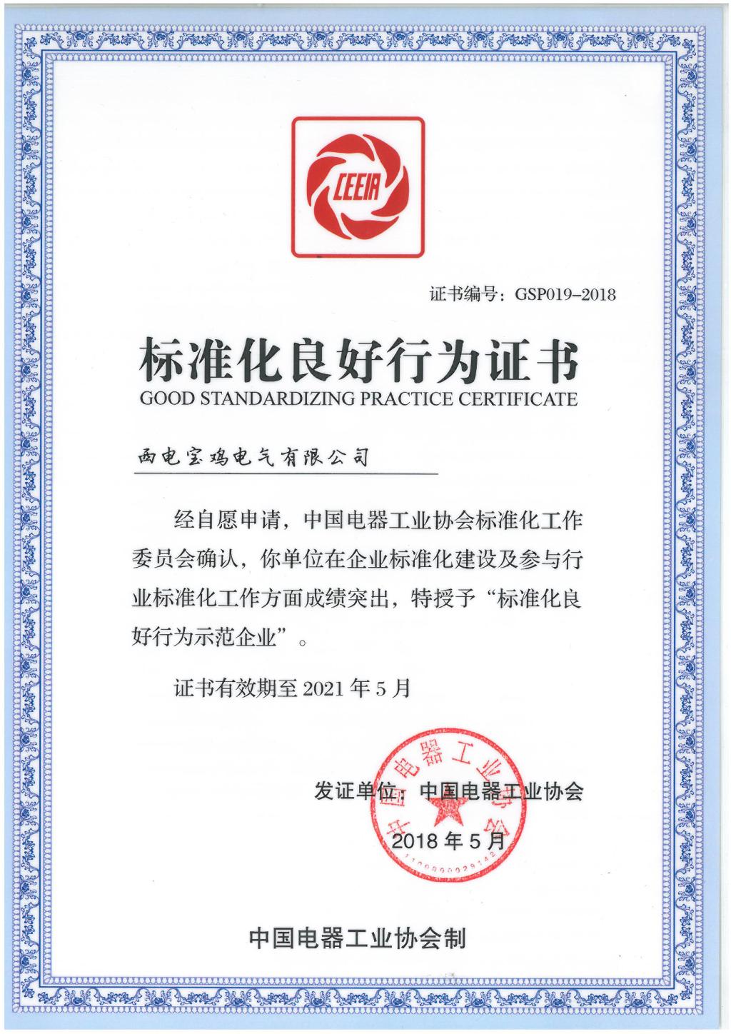 2017.11第六屆全國高壓開關(guān)設(shè)備標準化技術(shù)委員會標準化工作先進集體