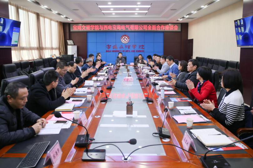 1月17日下午, 西電寶雞電氣與寶雞文理學(xué)院全面合作座談會在寶雞文理學(xué)院順利召開。寶雞文理學(xué)院黨委書記白黎、西電寶雞電氣總經(jīng)理謝洪濤出席會議并講話。