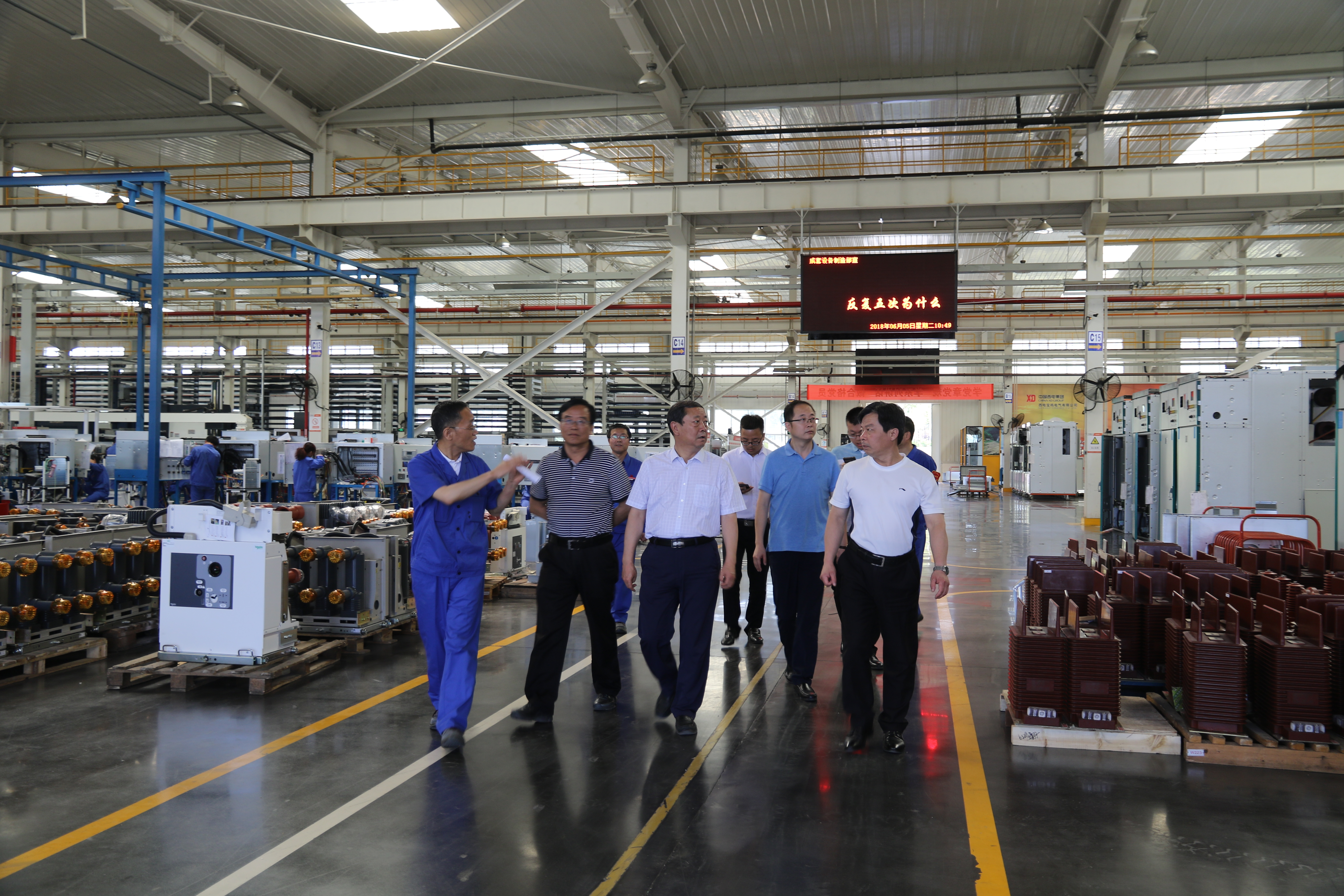 2018年6月5日上午,寶雞市高新區(qū)管委會副主任王天勛一行七人蒞臨西電寶雞電氣進行參觀考察。在公司執(zhí)行董事和主管生產(chǎn)的副總經(jīng)理陪同下,參觀了開關柜成套裝配產(chǎn)線、斷路器生產(chǎn)線。召開了座談會,聽取了公司近幾年在黨建、市場營銷、新品研發(fā)、智能制造等方面的發(fā)展情況及公司十三五戰(zhàn)略發(fā)展規(guī)劃。