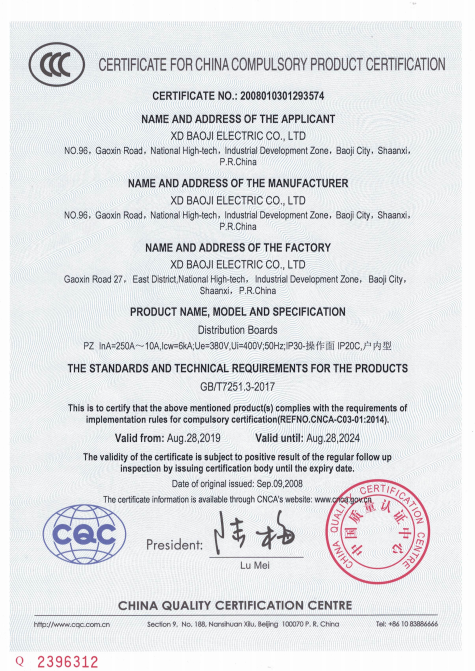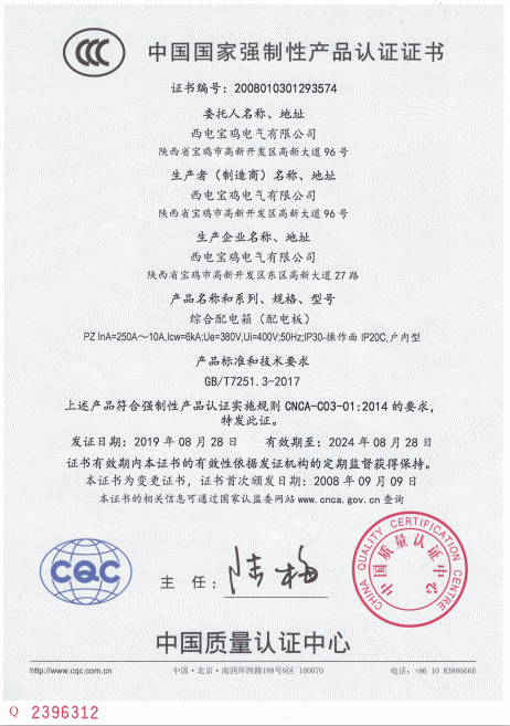 經(jīng)過前期資料準(zhǔn)備、網(wǎng)上申請、樣機制作、型式試驗、產(chǎn)品認(rèn)證等多個環(huán)節(jié),近期,西電寶雞電氣取得了PZ綜合配電箱新的產(chǎn)品型式試驗報告和3C認(rèn)證證書,順利完成了新版標(biāo)準(zhǔn)的換版工作,將助力公司低壓柜產(chǎn)品的銷售。