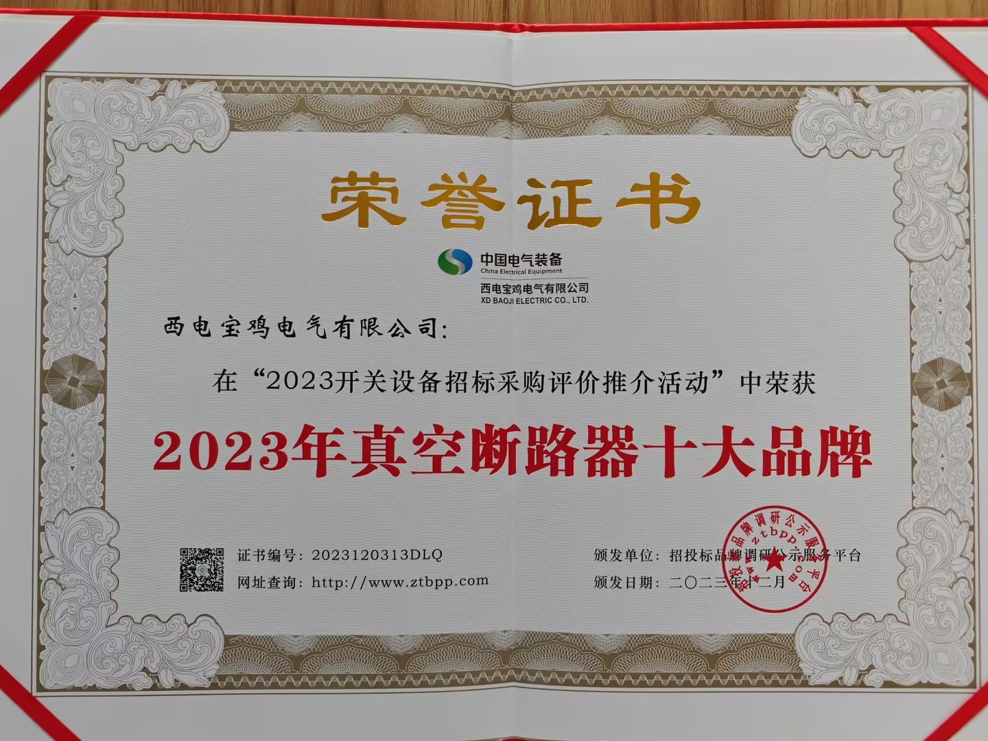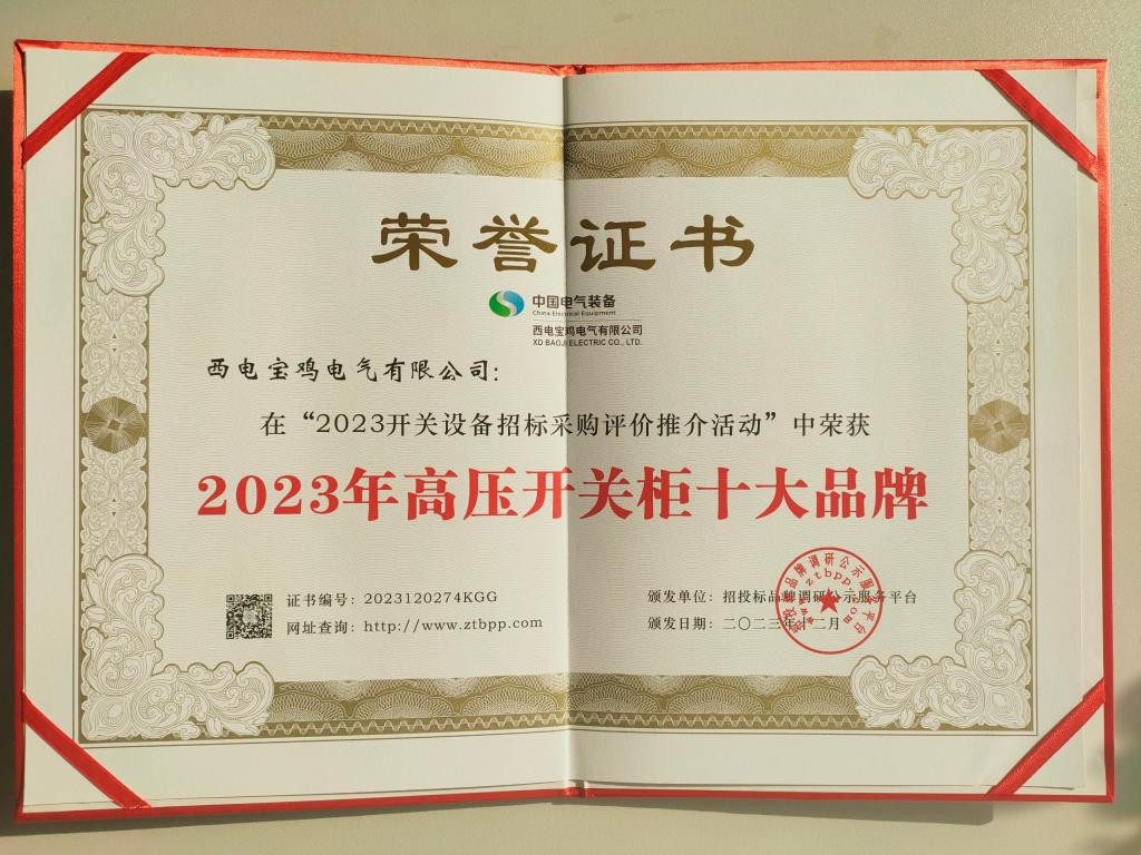 近日,西電寶雞電氣在招投標(biāo)品牌調(diào)研公示服務(wù)平臺主辦的“2023開關(guān)設(shè)備招標(biāo)采購評價推介”活動中,獲得“2023年高壓開關(guān)柜十大品牌”、“2023年真空斷路器十大品牌”殊榮。本次活動受到招投標(biāo)各方的廣泛關(guān)注,吸引全國285家業(yè)內(nèi)知名企業(yè)參與,經(jīng)過近二個月的激烈角逐,西電寶雞電氣高壓開關(guān)柜、真空斷路器產(chǎn)品憑借先進的生產(chǎn)工藝、穩(wěn)定的產(chǎn)品質(zhì)量、優(yōu)質(zhì)的系統(tǒng)服務(wù),贏得了廣大用戶的廣泛好評,充分彰顯了西電寶雞電氣在電力成套開關(guān)設(shè)備及核心元器件行業(yè)內(nèi)卓越的實力與領(lǐng)先地位,贏得業(yè)內(nèi)廣泛關(guān)注與好評。
