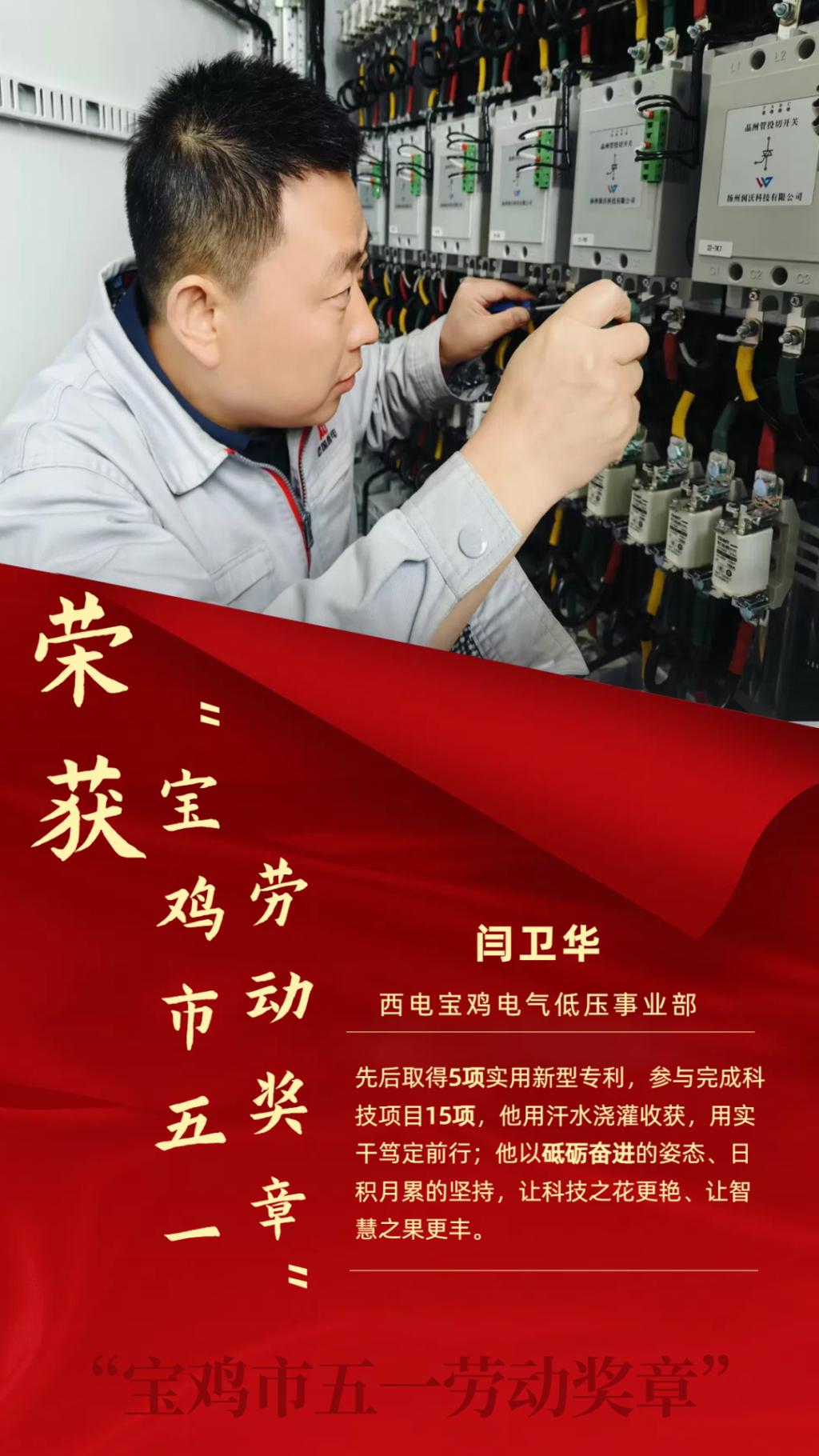 人間最美是勞動(dòng),花團(tuán)錦簇迎“五一”。在五一國(guó)際勞動(dòng)節(jié)到來(lái)之際,西電寶雞電氣毛寧星獲評(píng)“中國(guó)電氣裝備工匠”、閆衛(wèi)華獲評(píng)“寶雞市五一勞動(dòng)獎(jiǎng)?wù)隆?/span>,進(jìn)一步激勵(lì)公司廣大干部職工大力弘揚(yáng)勞動(dòng)精神,激揚(yáng)奮斗情懷,為寶雞市社會(huì)經(jīng)濟(jì)及企業(yè)高質(zhì)量發(fā)展做出新的更大的貢獻(xiàn)。