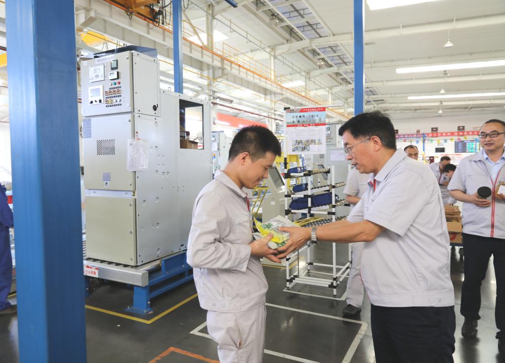 烈日高溫,酷暑來(lái)襲,西電寶雞電氣各生產(chǎn)班組的職工們與熱浪作斗爭(zhēng),堅(jiān)守奮斗在一線各個(gè)工作崗位,趕生產(chǎn)、保履約。7月31日下午,為關(guān)心關(guān)愛(ài)一線職工,西電寶雞電氣班子成員一行,向一線職工表示慰問(wèn),送上清涼。
