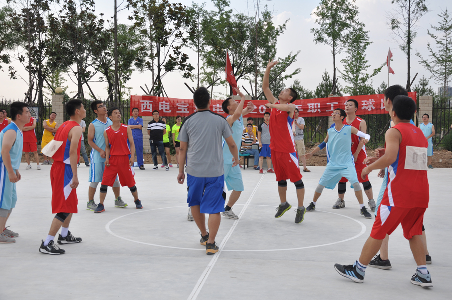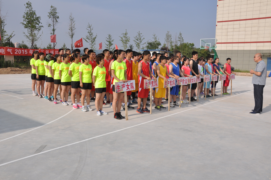 7月20日下午,經(jīng)過簡(jiǎn)單裝點(diǎn)的西電寶雞電氣職工生活樓旁的籃球場(chǎng)異常熱鬧,身著各色運(yùn)動(dòng)服裝的運(yùn)動(dòng)員、教練員、裁判員及公司領(lǐng)導(dǎo)和職工齊聚一堂,歡慶2015年職工籃球賽開幕。